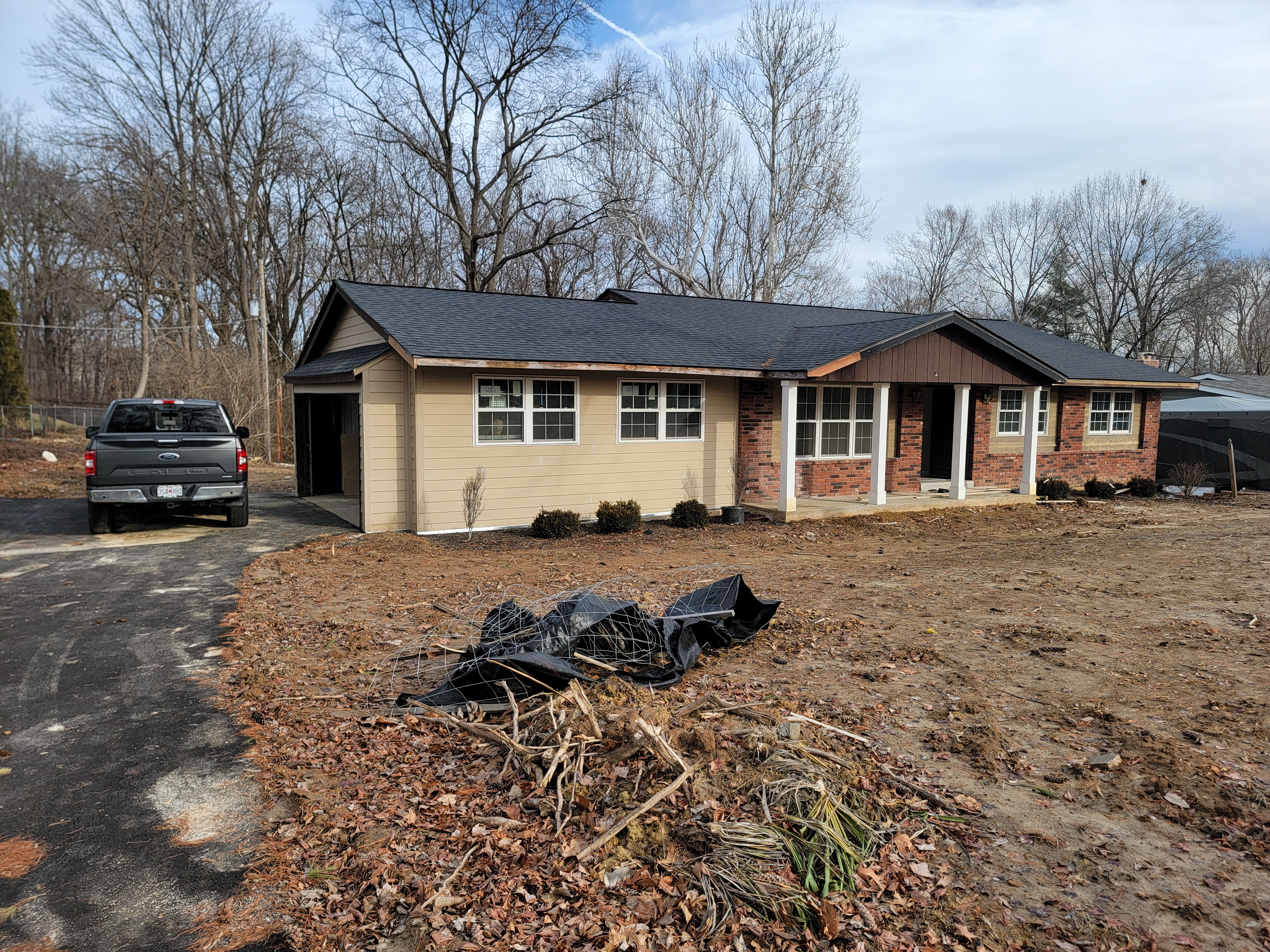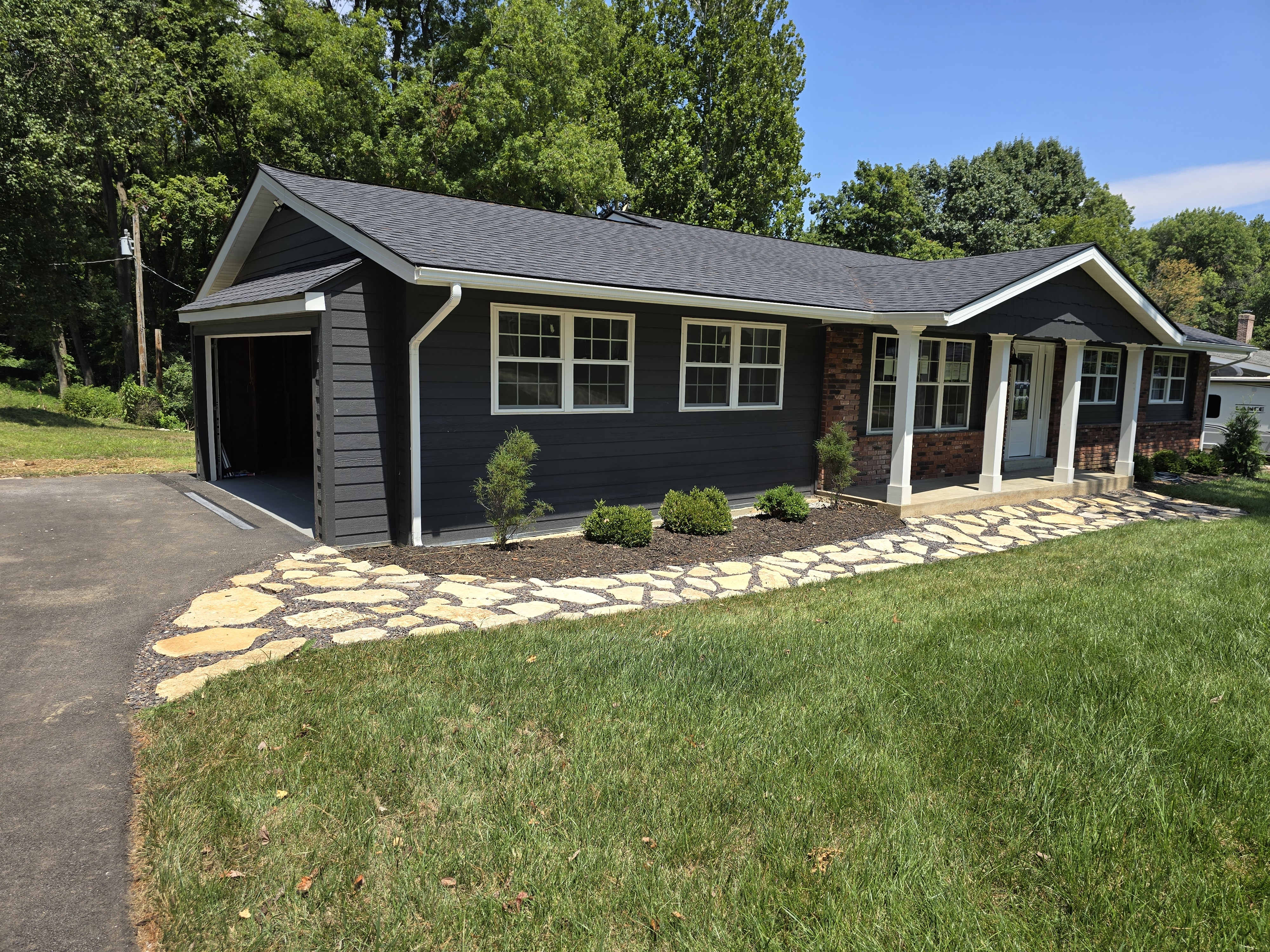 Full exterior transformation with siding, paint, and curb appeal upgrades.