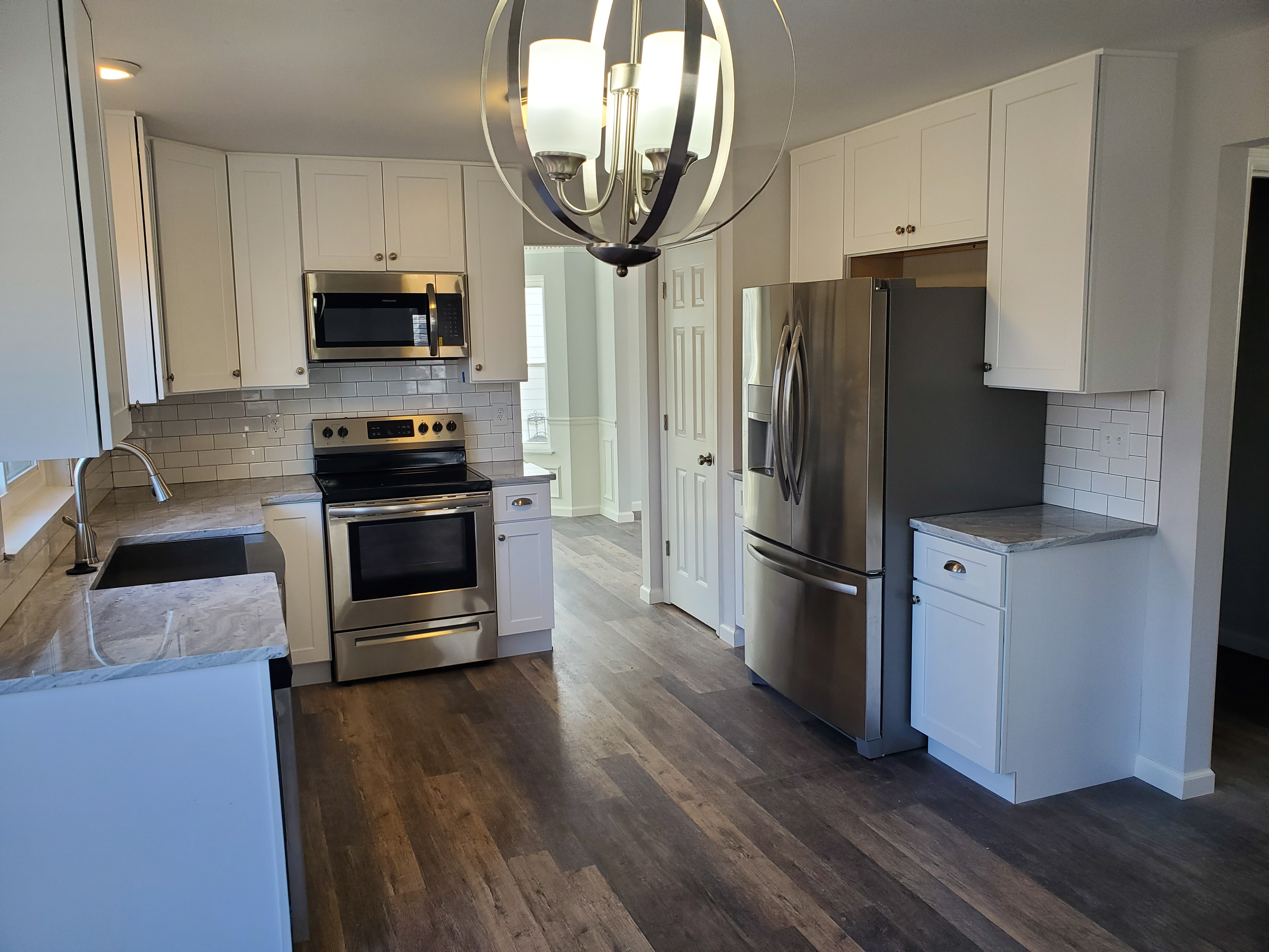 Modern kitchen upgrade with new cabinets, counters, and layout.
