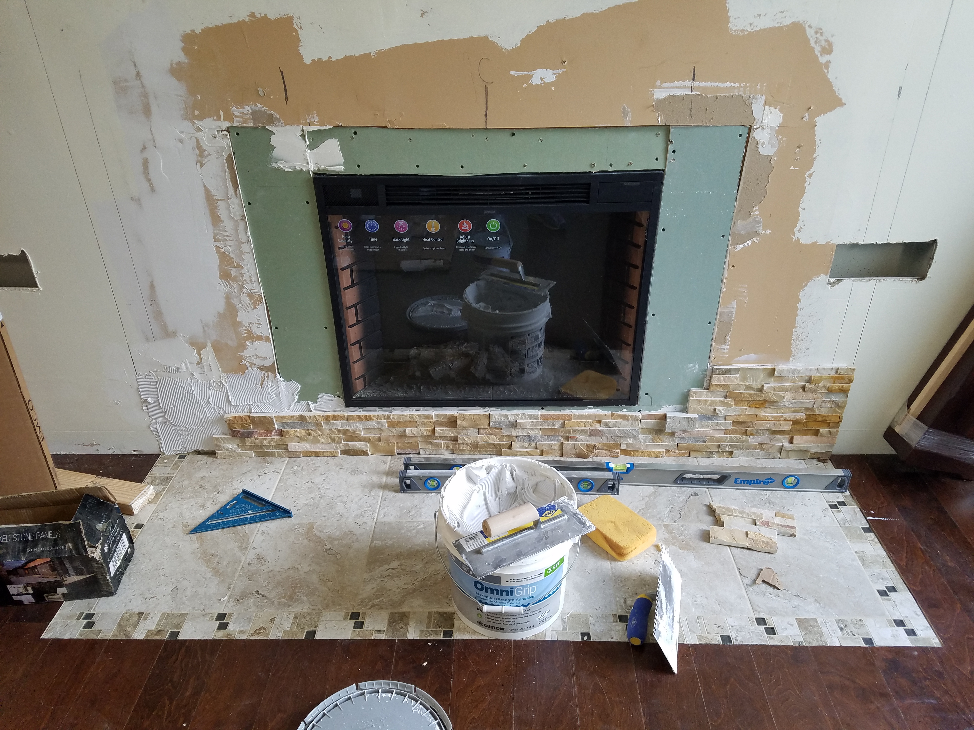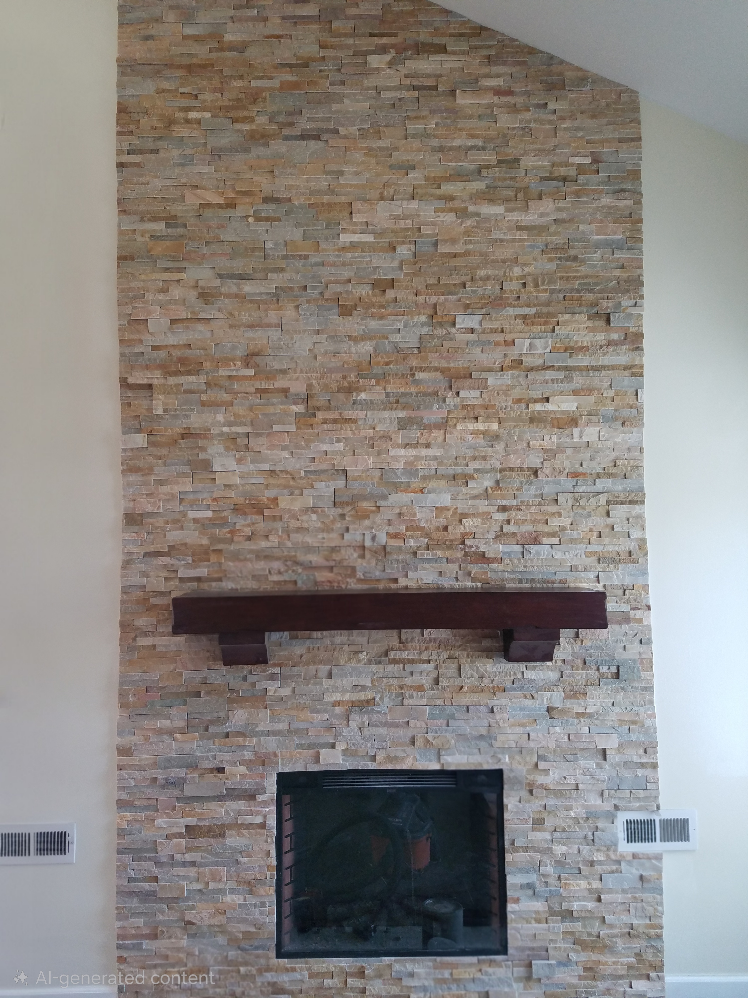 Custom stone fireplace with clean modern finish.